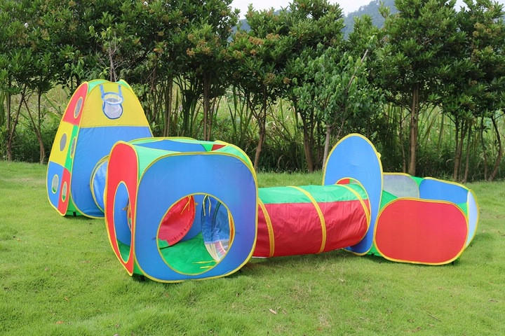 Цей яскравий та багатофункціональний комплекс складається з трьох палаток, двох тунелів та м'ячиків на липучках. Кожна палатка – це цілий світ для ігор та навчання: